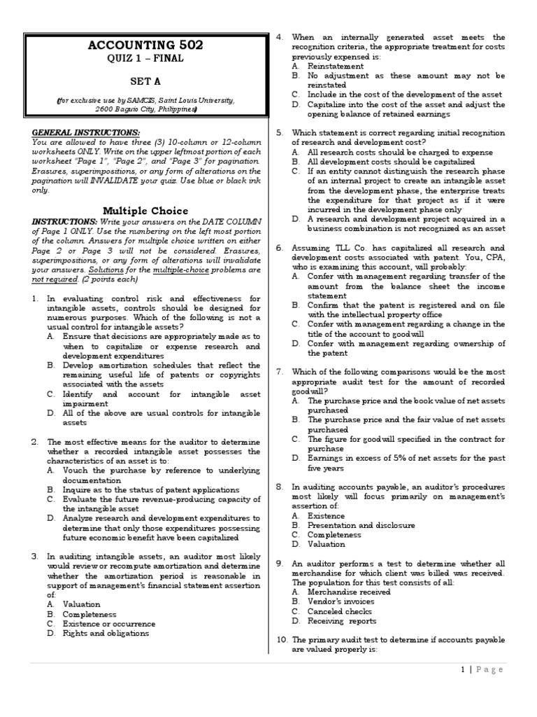 Finals Quiz 1 Pdf Pdf Goodwill Accounting Intangible Asset