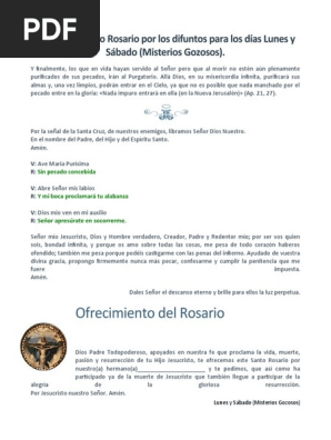 Concédenos que pues celebramos con alegría su conmemoración por su piadosa intercesión seamos liberados de. Santo rosario para difuntos pdf para imprimir. Guardar Guardar 01_Rosario de difuntos_Misterios Gozosos_Lunes y S.